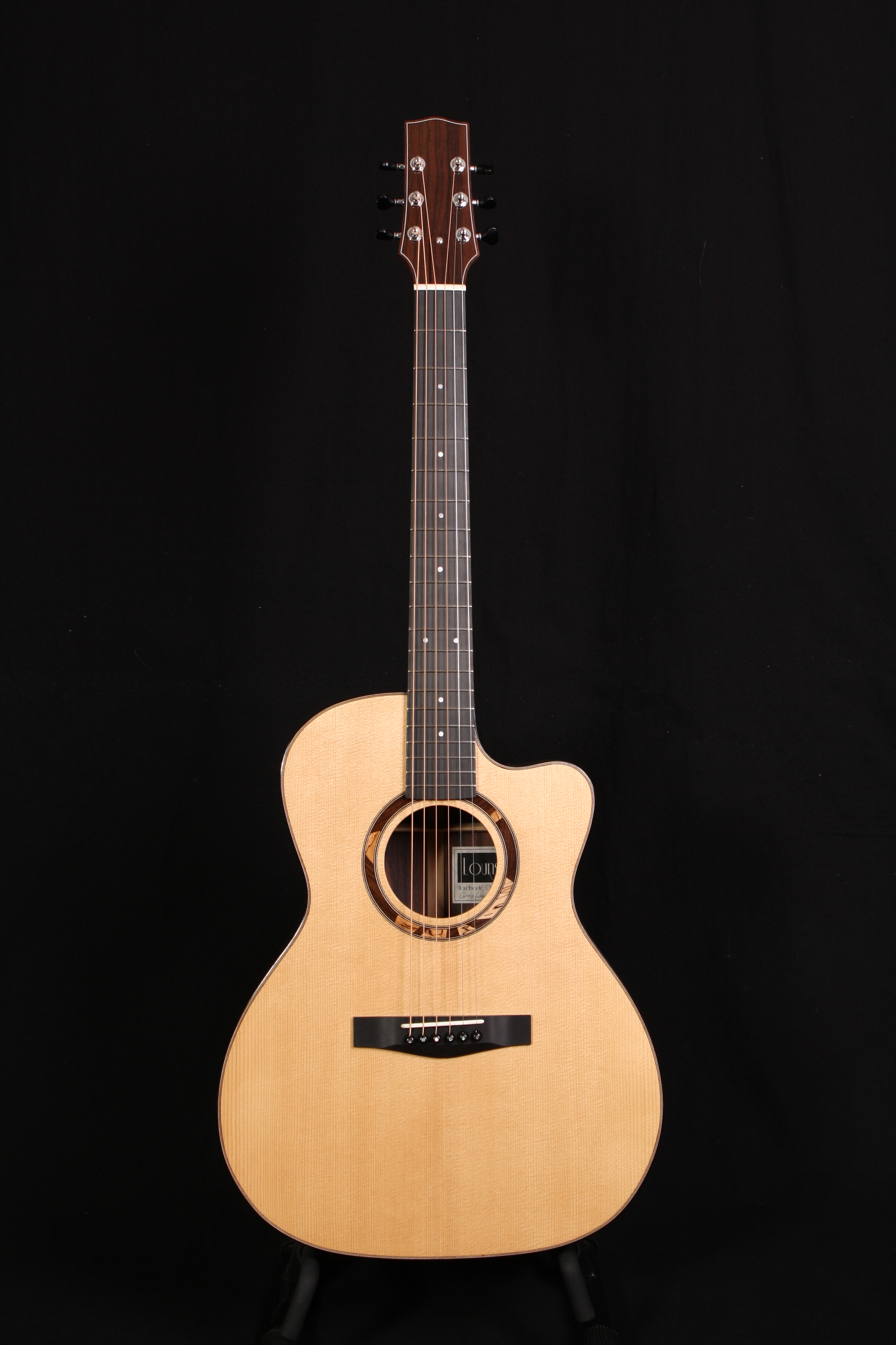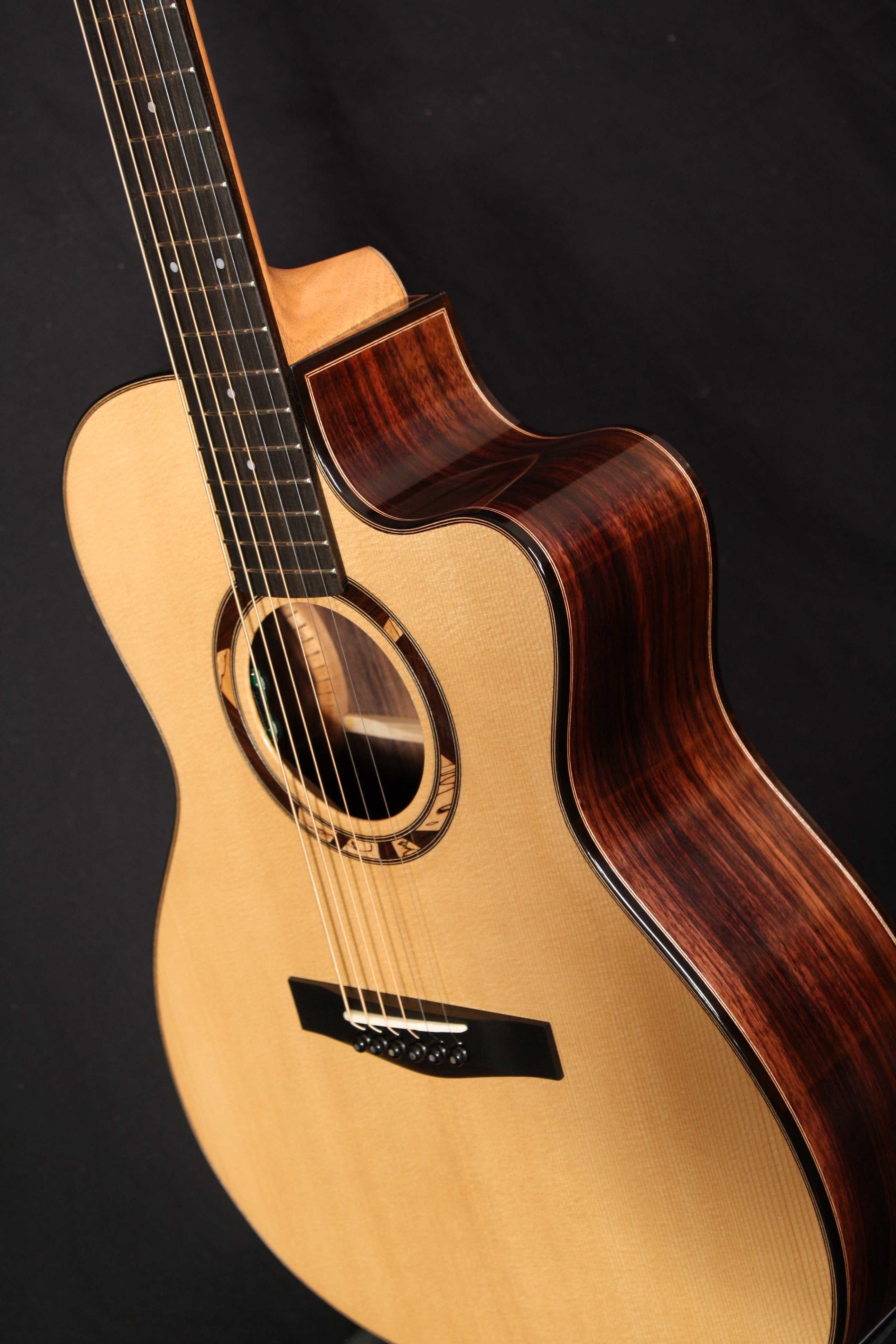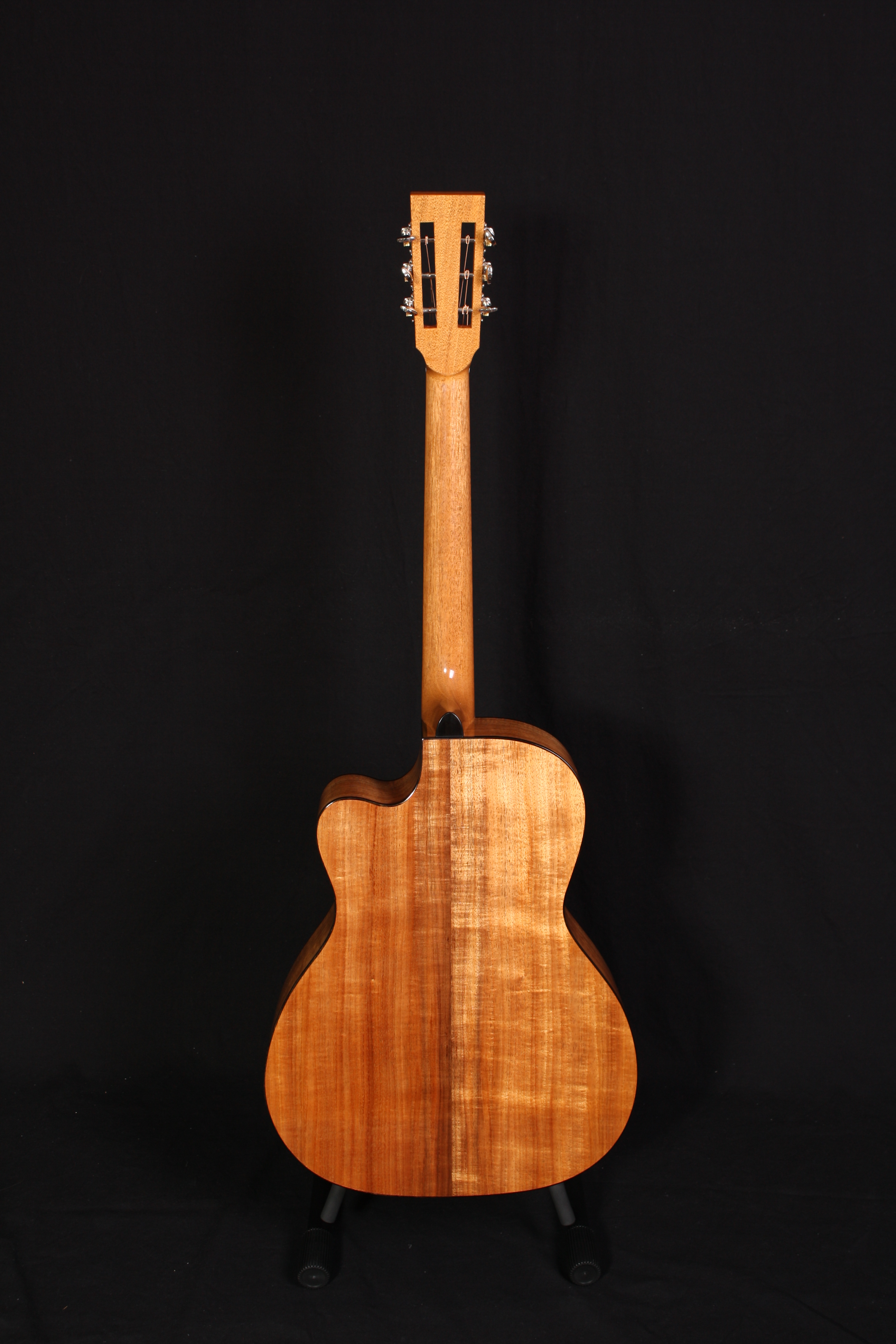 My Concert Model is of my own design but can be thought of in the same realm as a Martin OM. I build this model with 24.9″ or 25.4″ scales, 14 or 13-fret neck locations, solid or slotted pegheads, venetian cutaway or not, etc…