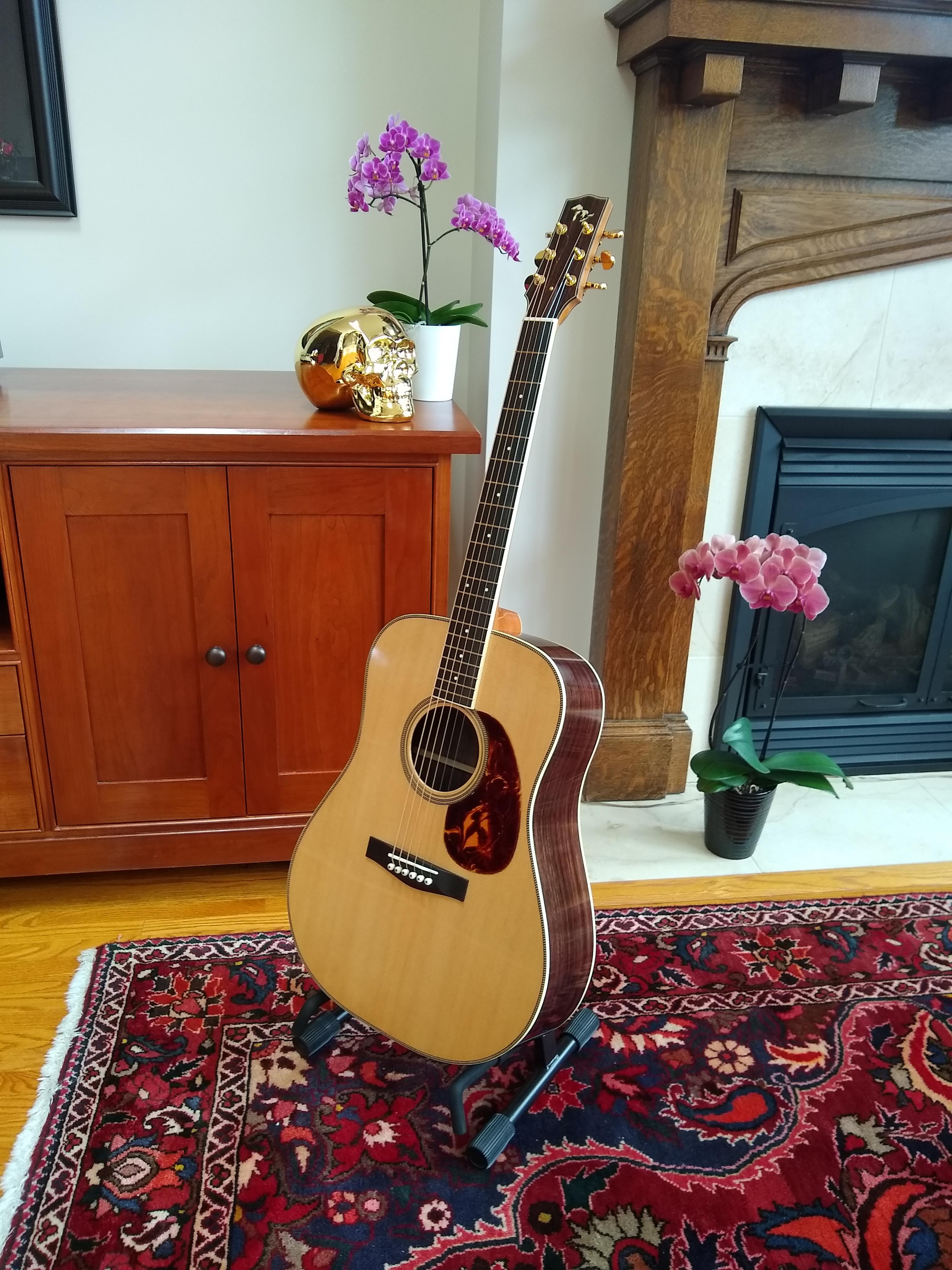 The last guitar I designed was my Junior Giant. It is a 16″ “small jumbo” and it fits into a J-185 case. All these models have their place, and no doubt smaller guitars can be physically comfortable to play but, sonically I think this was my most satisfying design.
