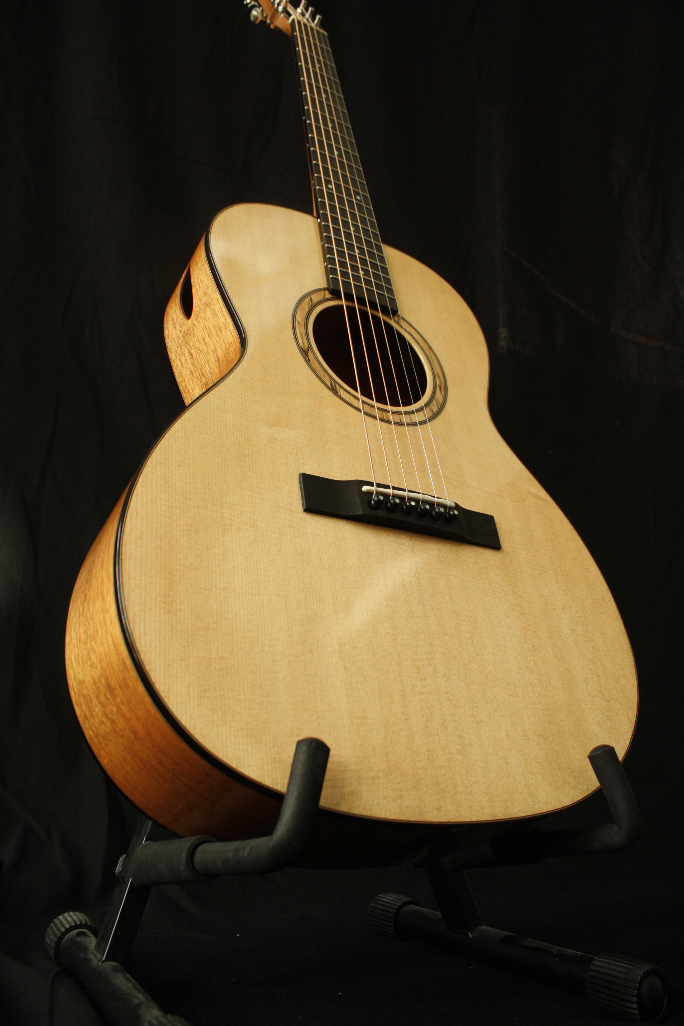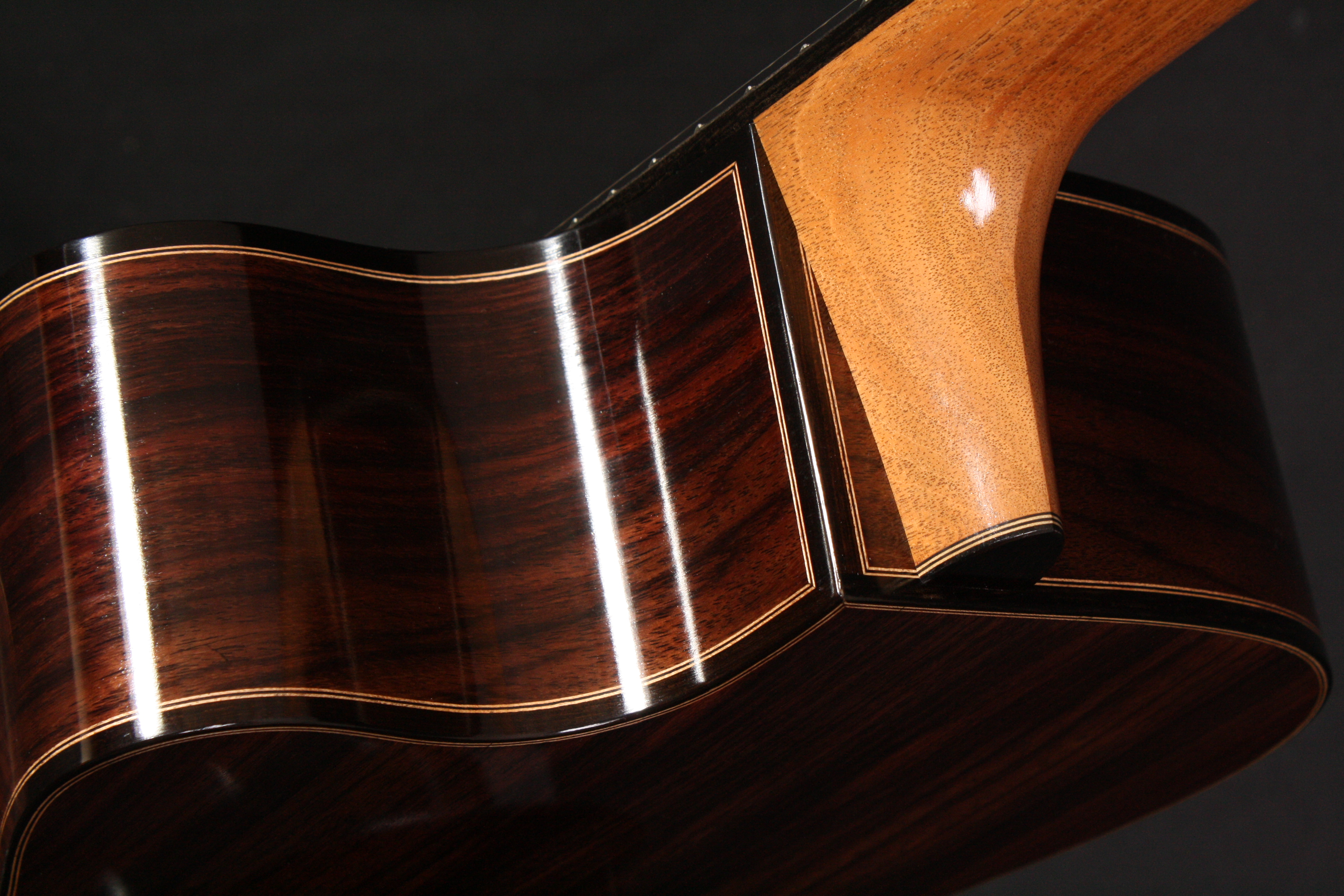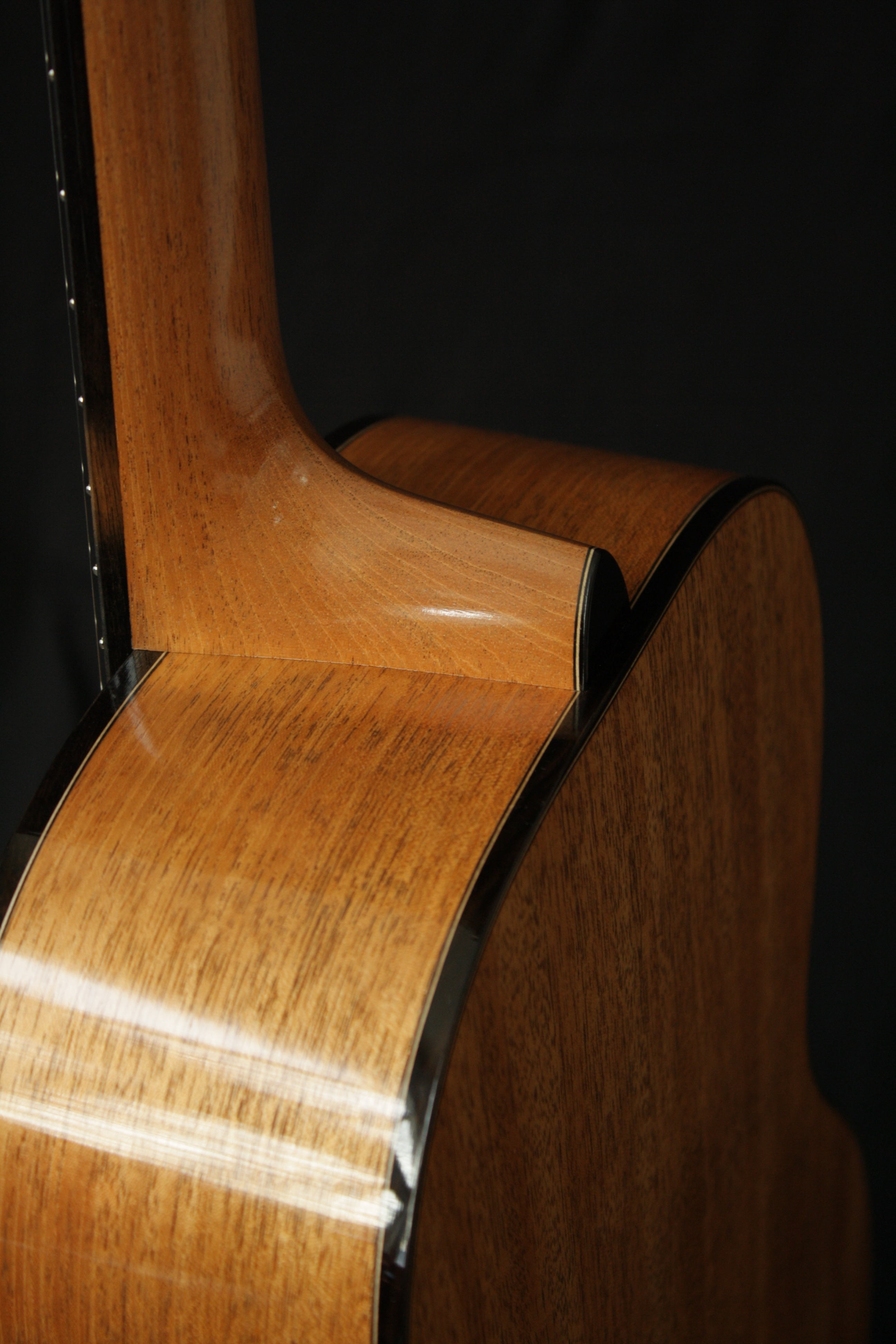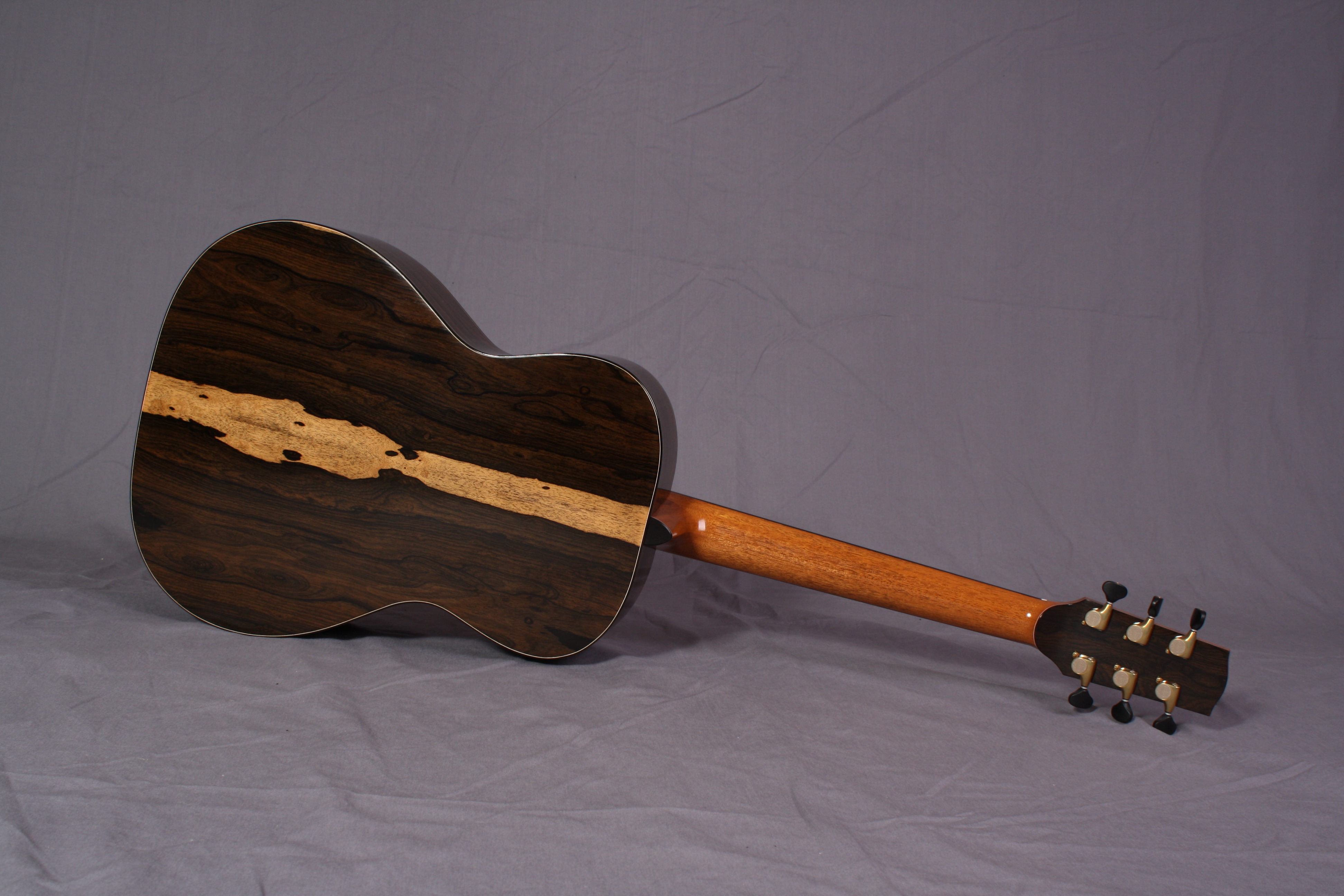I offered a dreadnought that is slightly modified from the classic Martin outline, with a just-slightly narrower waist to give it a bit more stability when playing seated. On this model I always used a 25.4″ scale.