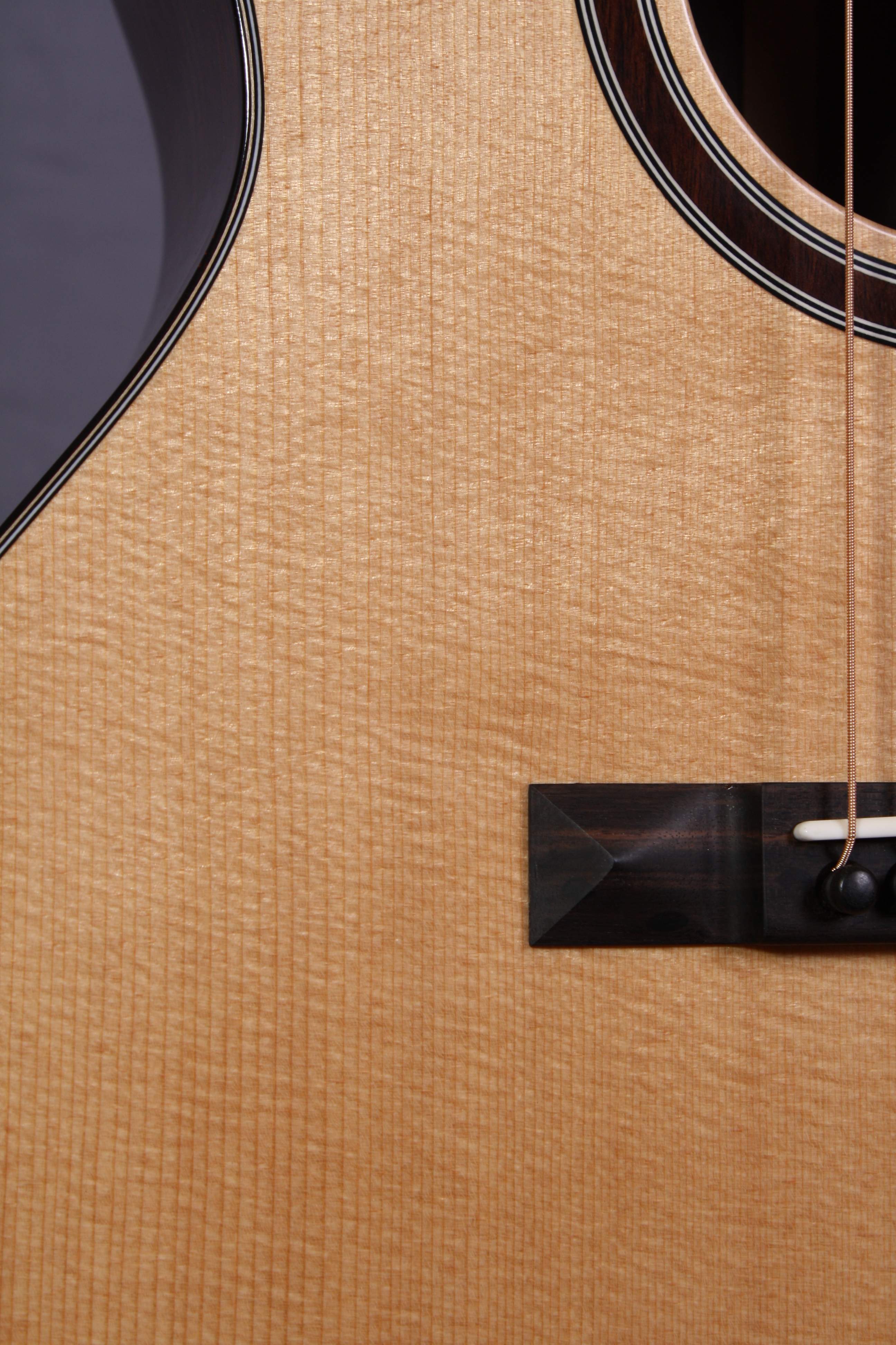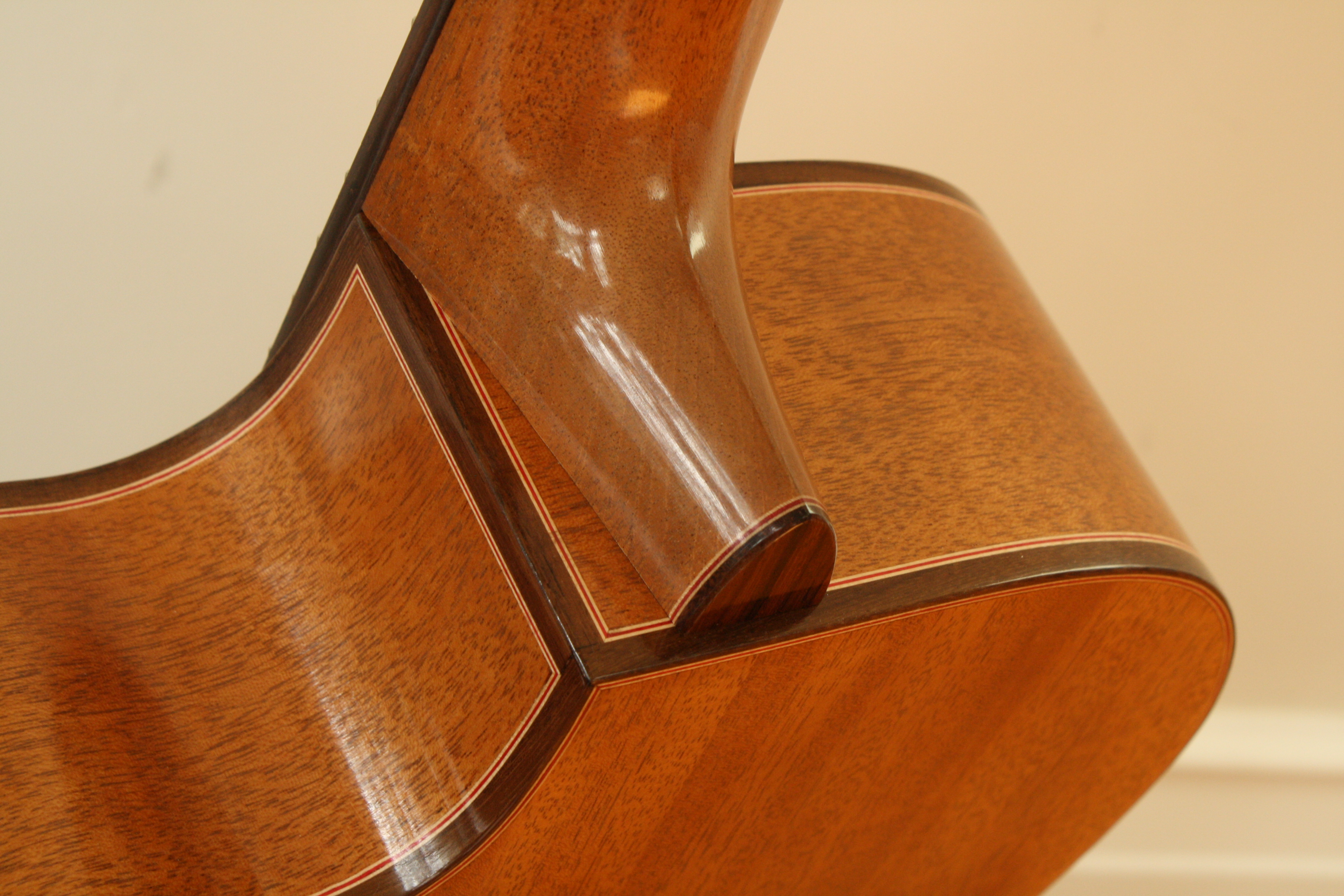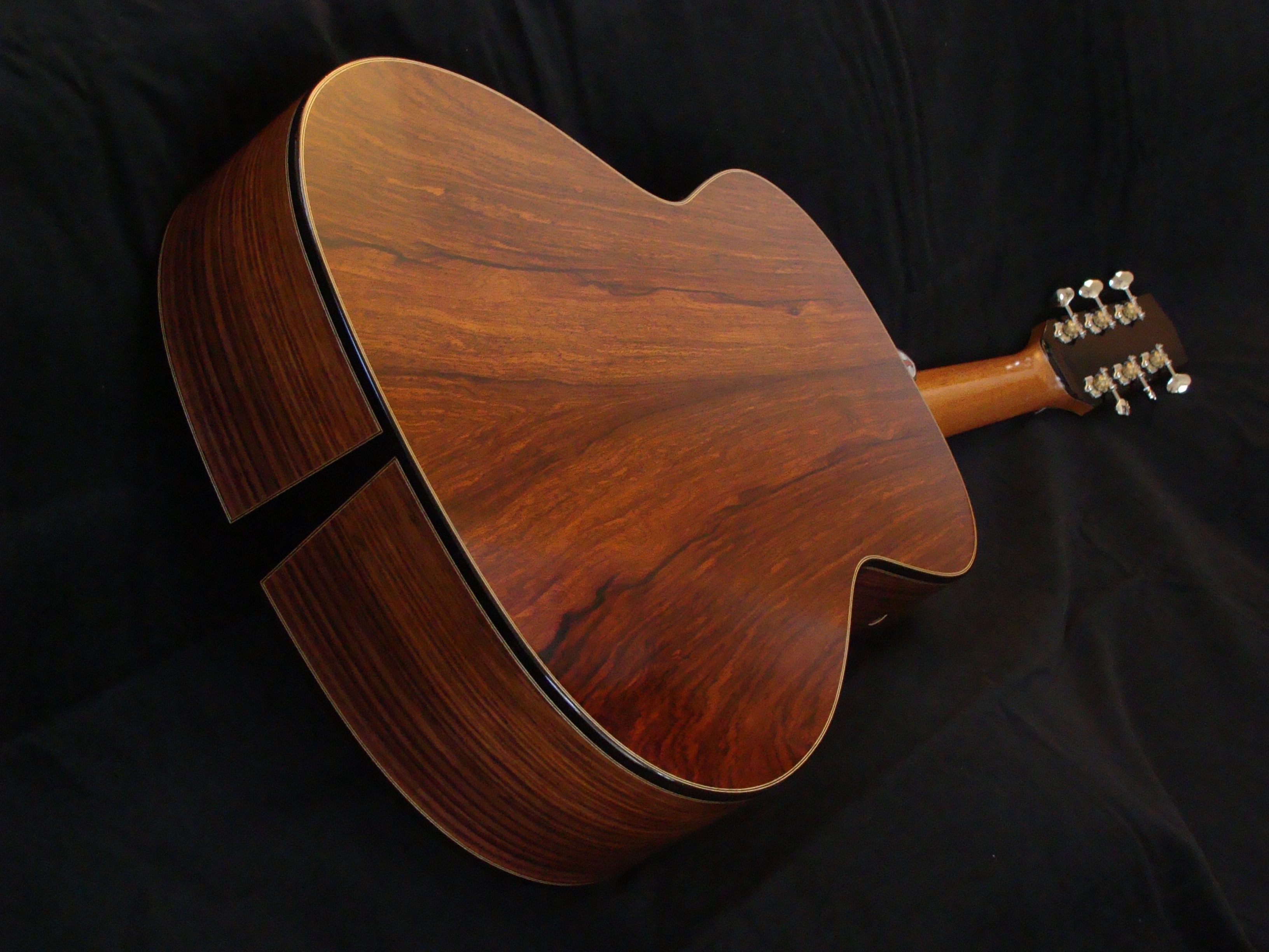 I offered a dreadnought that is slightly modified from the classic Martin outline, with a just-slightly narrower waist to give it a bit more stability when playing seated. On this model I always used a 25.4″ scale.