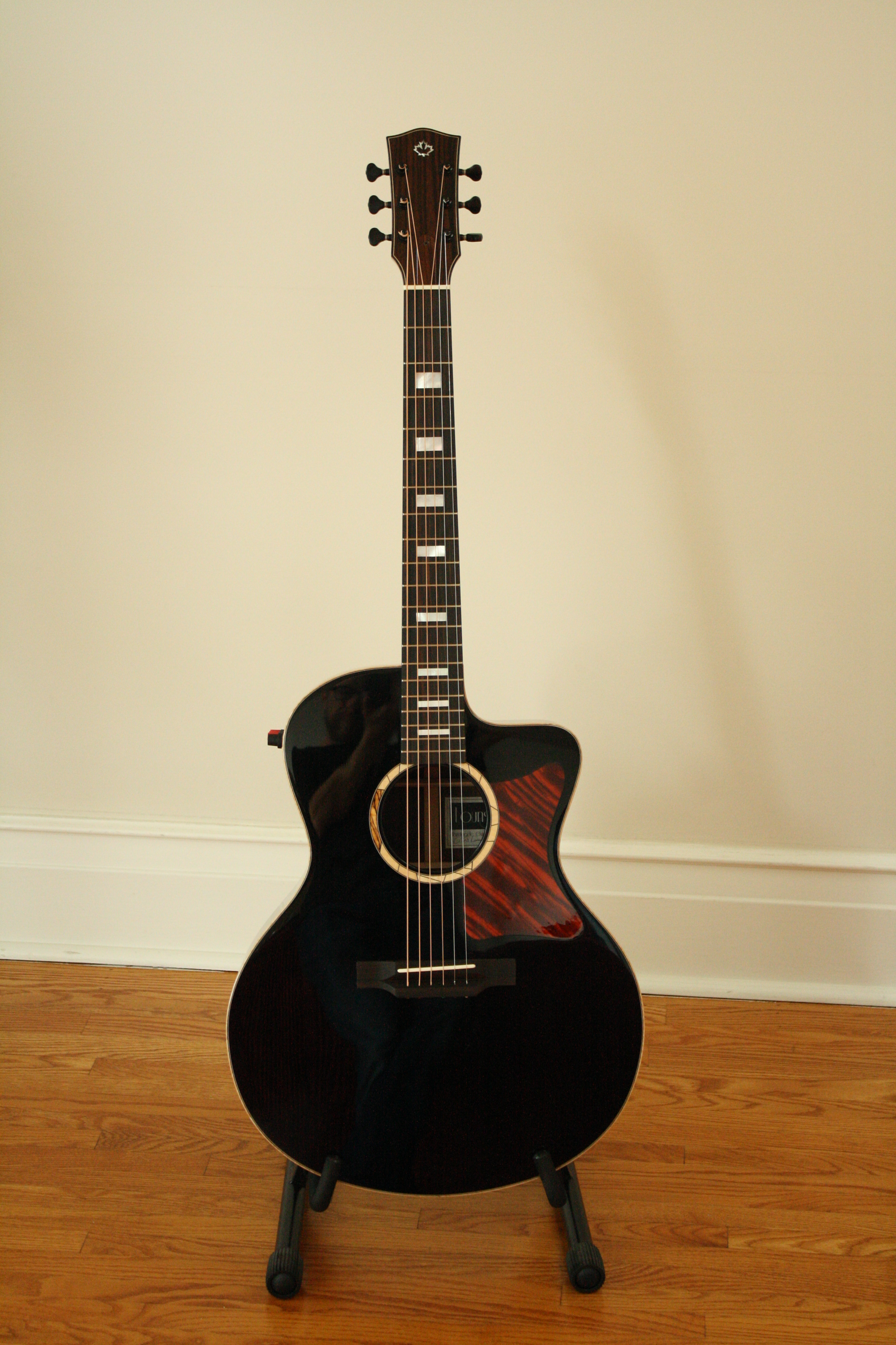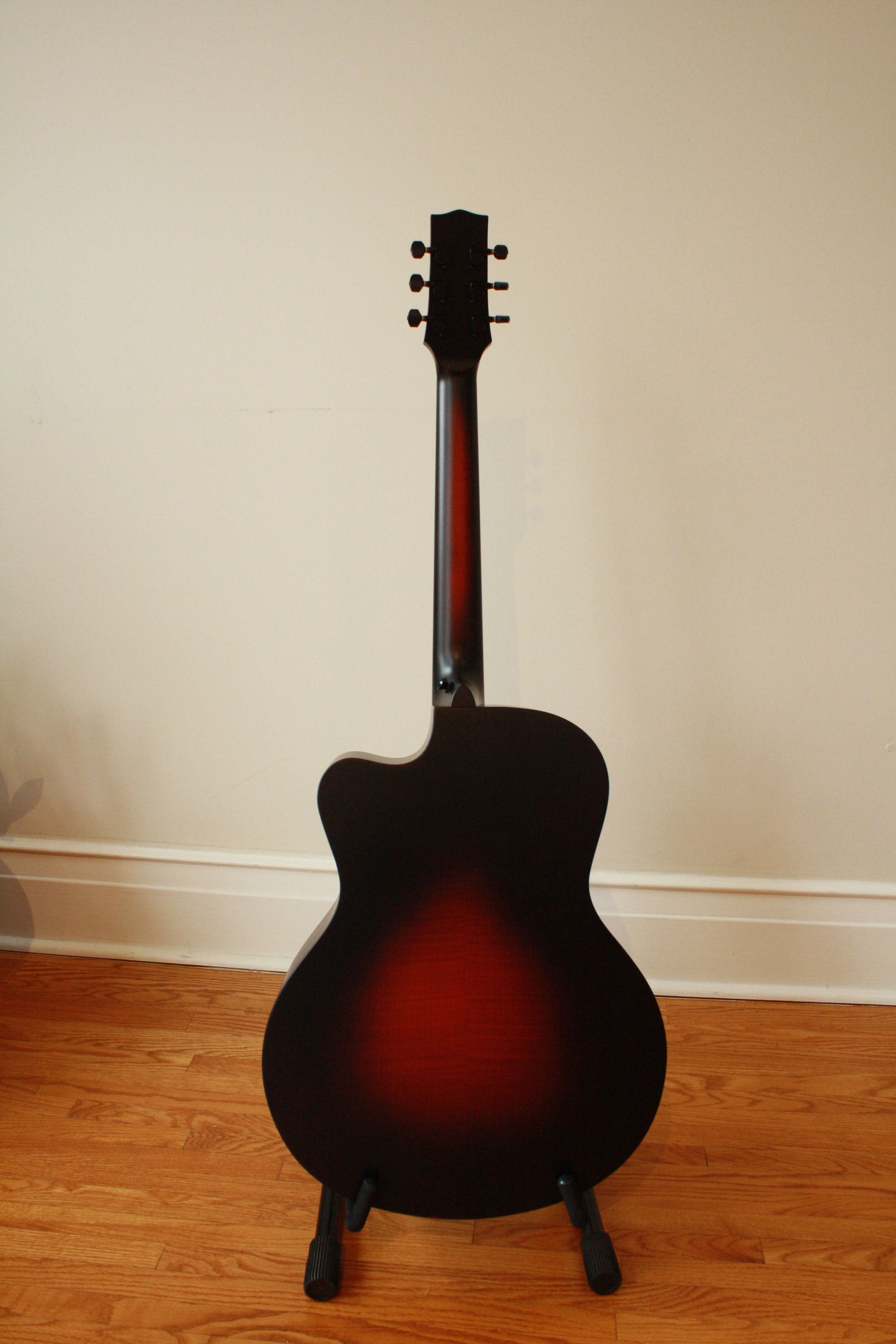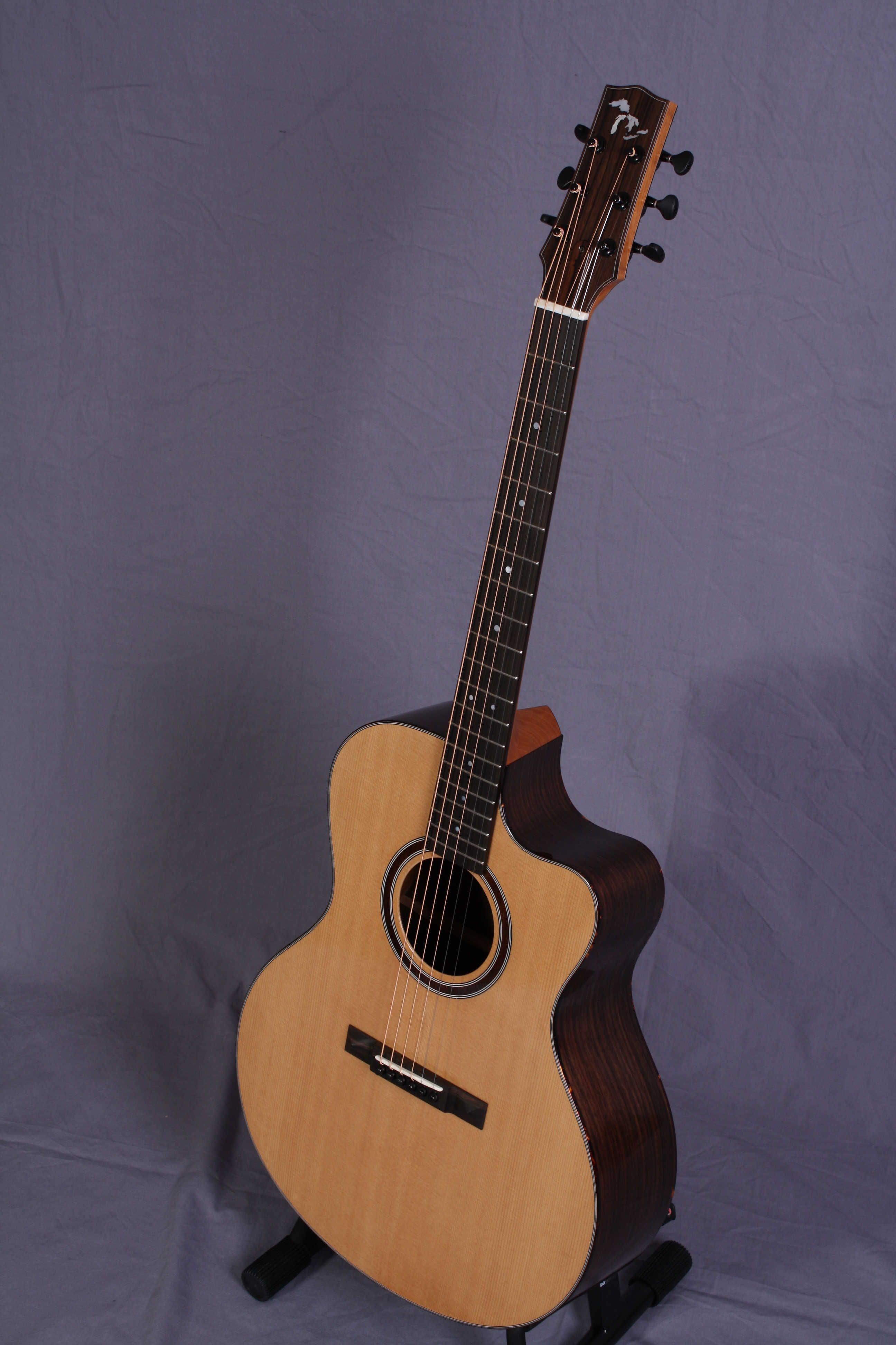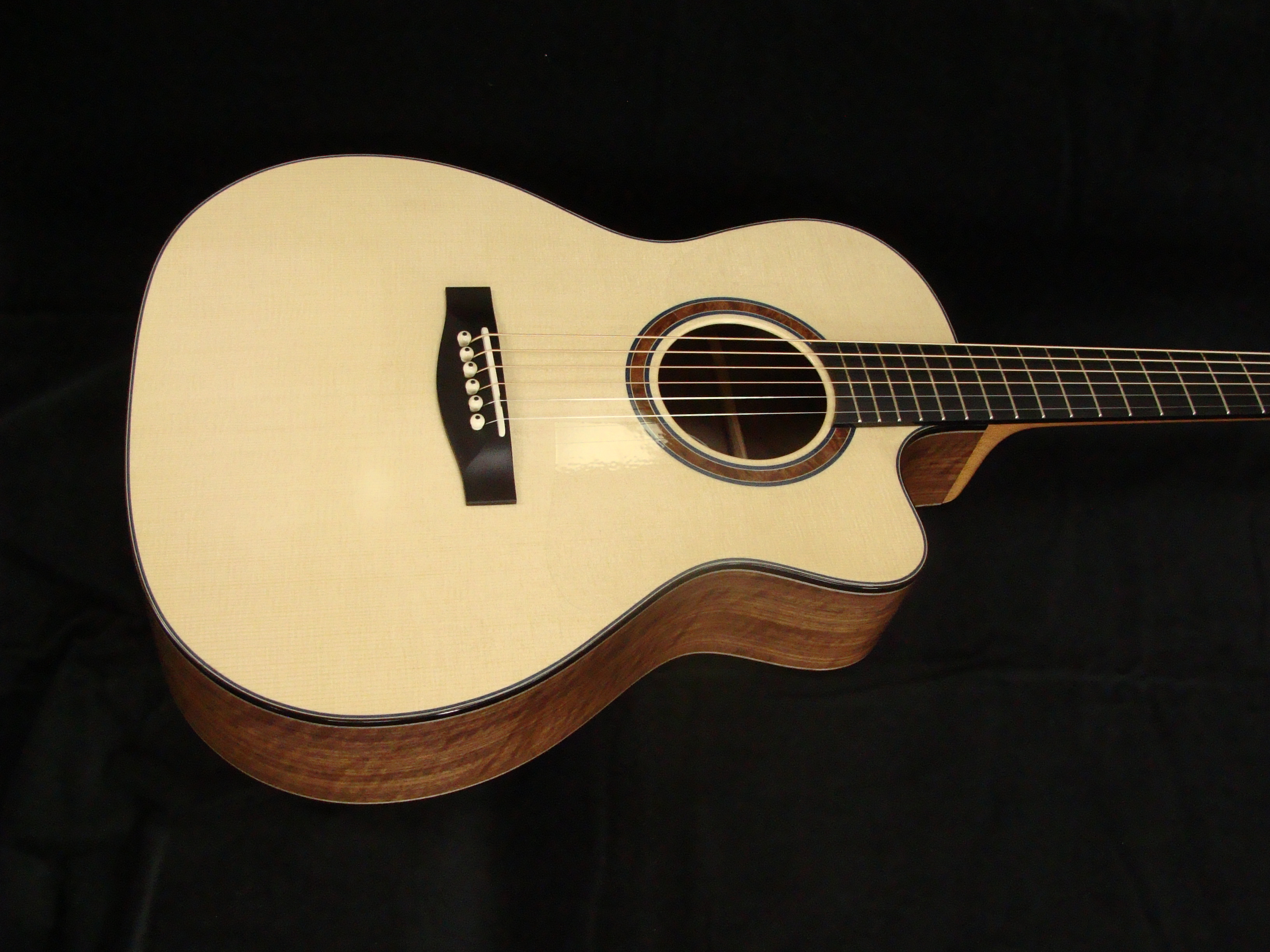 I offered a dreadnought that is slightly modified from the classic Martin outline, with a just-slightly narrower waist to give it a bit more stability when playing seated. On this model I always used a 25.4″ scale.